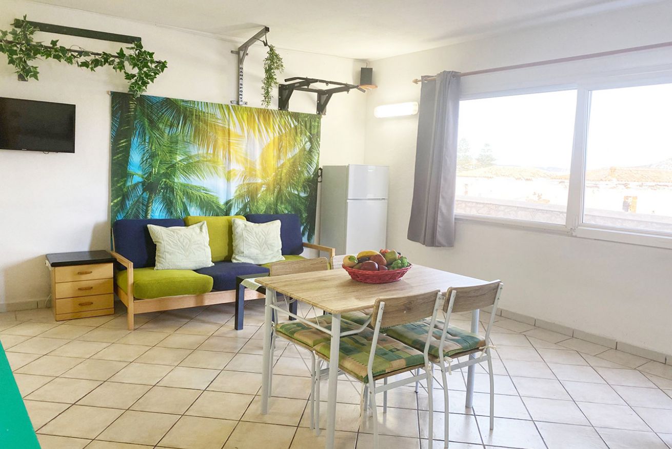 All’ingresso dell’appartamento troviamo ampio soggiorno con angolo cottura e letto matrimoniale, bagno con doccia e piccolo balcone con tavolo e sedie