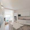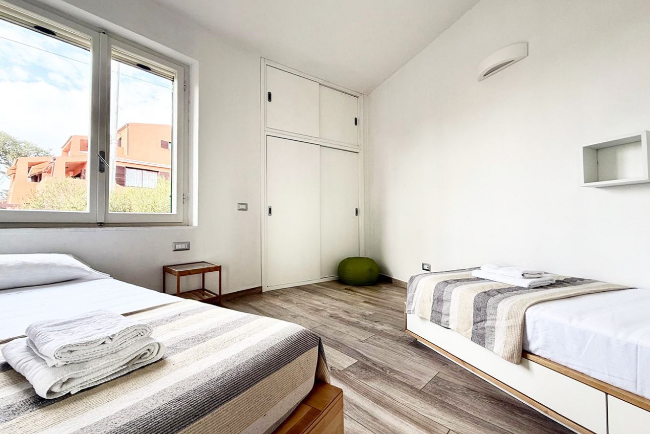 L’appartamento è composto da ampio soggiorno con angolo cottura, camera matrimoniale, cameretta con due letti singoli, bagno con box doccia e piccolo balcone.