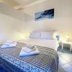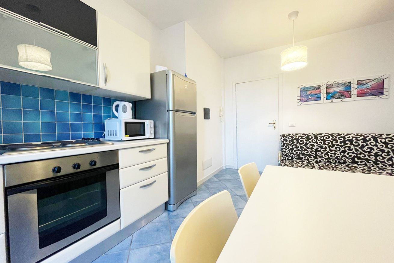 Il bilocale è composto da soggiorno con angolo cottura e divano letto matrimoniale, camera da letto matrimoniale e bagno con doccia senza bidet.