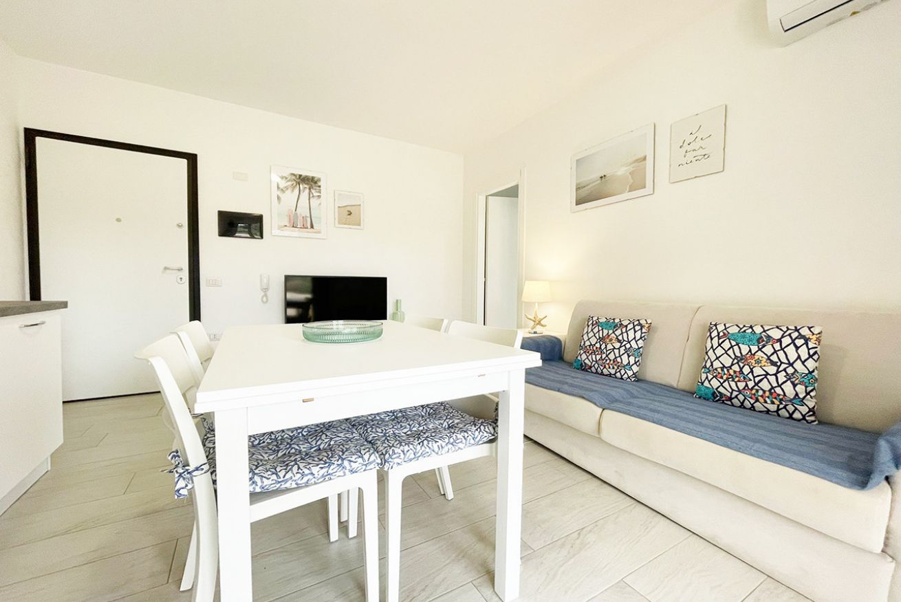 L’immobile è ubicato al piano terra in un condominio di recente costruzione ed è composto da soggiorno con angolo cottura e divano letto matrimoniale, camera matrimoniale, bagno con box doccia e terrazza attrezzata.