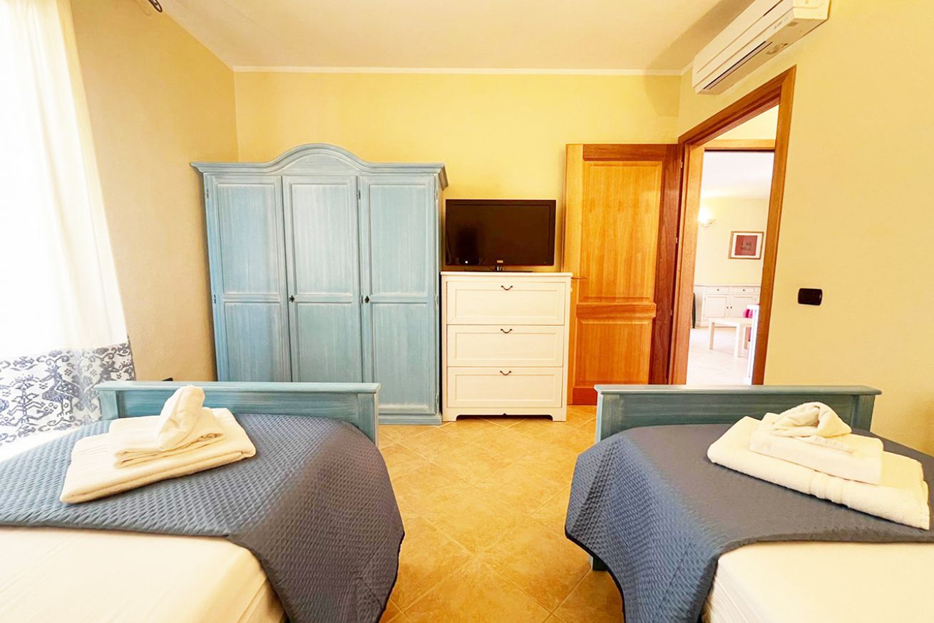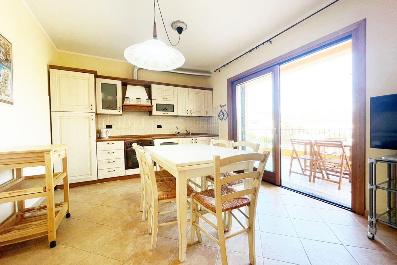 L’appartamento è composto da ampio soggiorno con angolo cottura e veranda attrezzata, camera matrimoniale con bagno ensuite, cameretta con letti gemelli e bagno con box doccia.