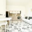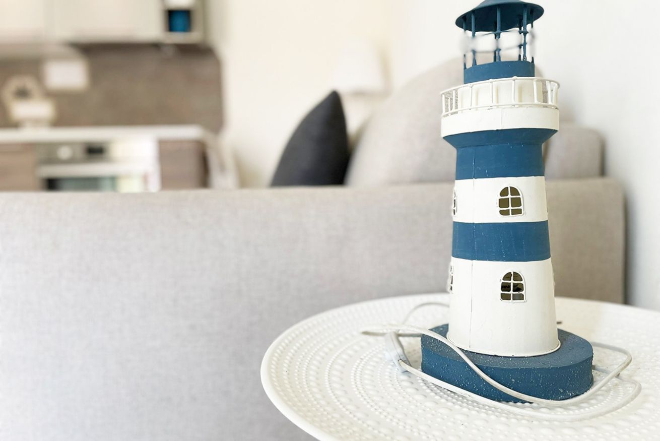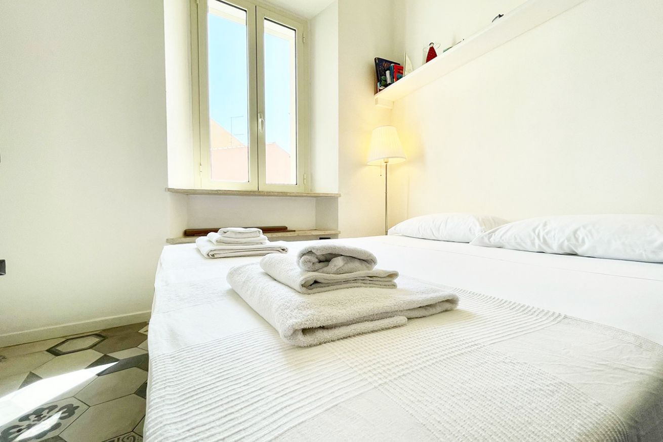 L’appartamento è composto da moderno soggiorno con angolo cottura e divano letto matrimoniale, camera da letto matrimoniale, balcone vista mare e bagno con box doccia.
