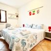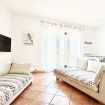 Il trilocale è composto da soggiorno con angolo cottura e divano letto matrimoniale, due camere da letto matrimoniali e bagno con box doccia.