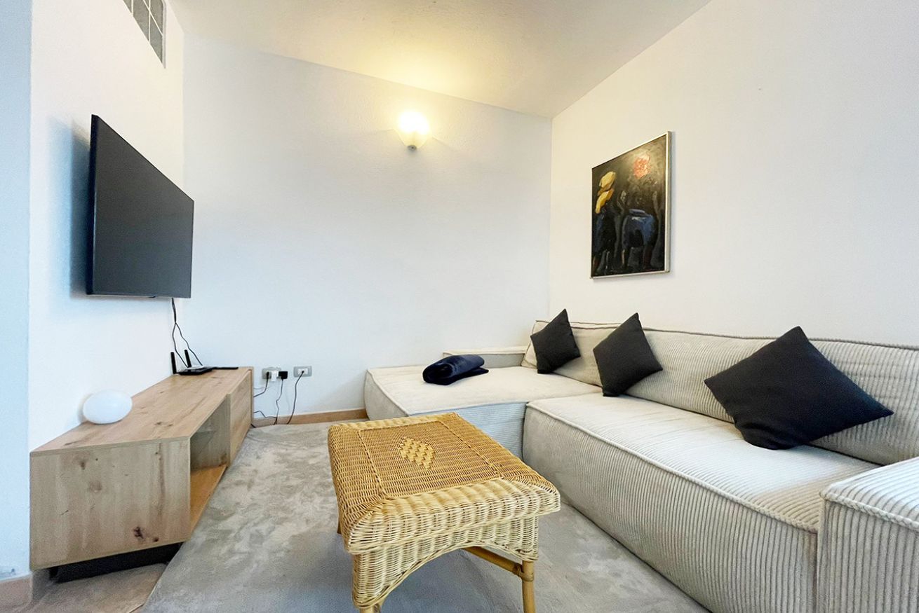 L’appartamento è accessoriato con aria condizionata, TV-LED, WI-FI, lavatrice, forno, macchinetta del caffè, bollitore e asciugacapelli.
