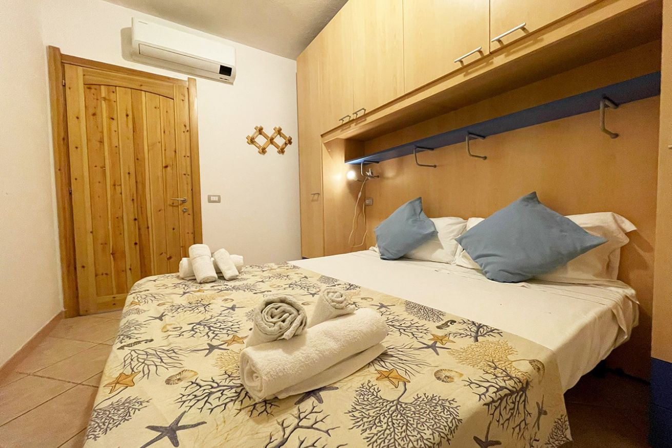 L’appartamento è composto da soggiorno con angolo cottura e terrazza vista mare, una camera matrimoniale, una cameretta con due lettini singoli e bagno con box doccia.