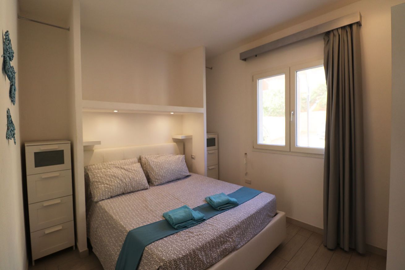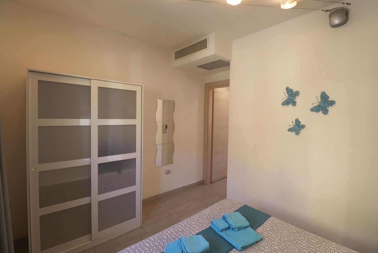 All’ingresso dell’appartamento troviamo soggiorno con divano letto matrimoniale, angolo cottura, camera da letto matrimoniale, bagno con box doccia e terrazza attrezzata con tavolo e sedie.